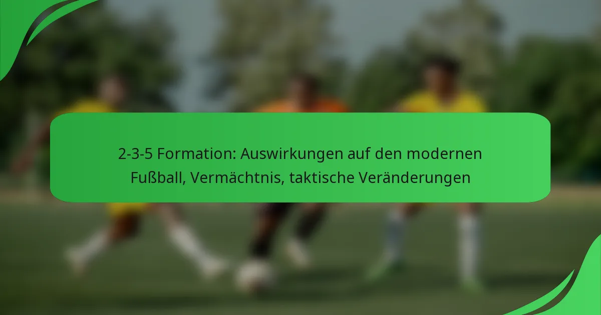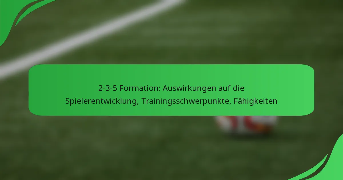 Die 2-3-5 Fußballformation ist ein klassisches taktisches Setup, das offensives Spiel priorisiert und aus zwei Verteidigern, drei Mittelfeldspielern und fünf Stürmern besteht. Diese Formation ist darauf ausgelegt, zahlreiche Tormöglichkeiten zu schaffen, während sie eine grundlegende defensive Struktur aufrechterhält, was sie zu einer beliebten Wahl für Teams macht, die im Angriff dominieren möchten. Ihre Abhängigkeit von einem starken Mittelfeld kann jedoch auch defensive Schwächen offenbaren, wenn sie nicht effektiv gemanagt wird.