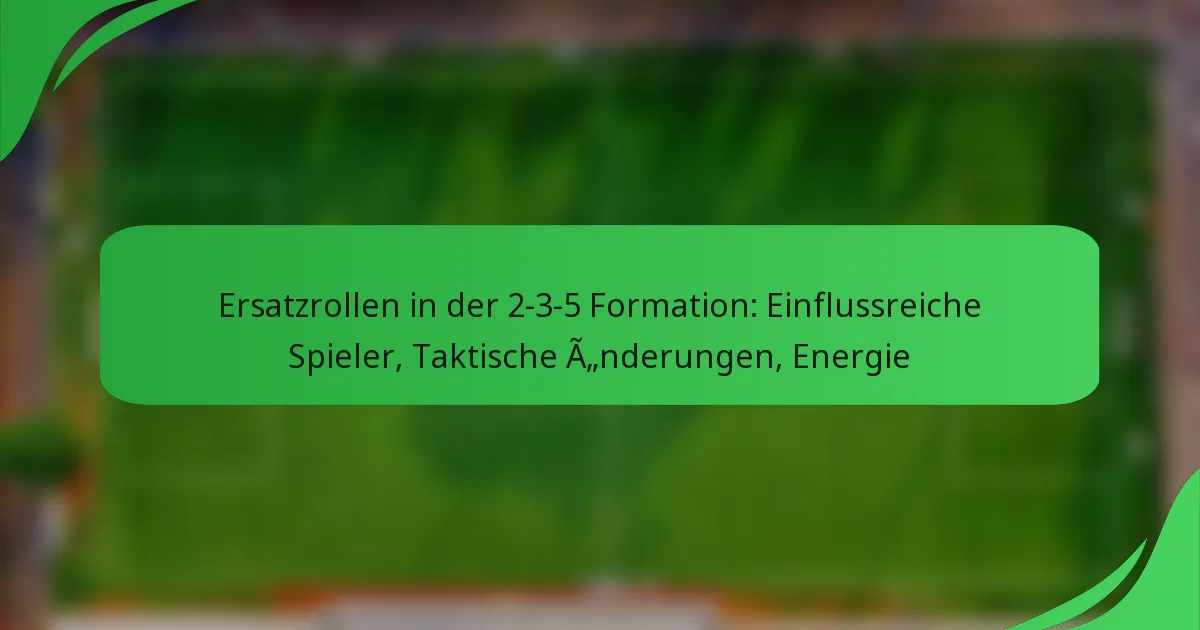 Auswechselspieler in der 2-3-5-Formation haben typischerweise spezifische Rollen, die den taktischen Bedürfnissen des Teams entsprechen. Diese Rollen können von offensiven Impulsen bis hin zu defensiven Verstärkungen reichen, abhängig von der Spielsituation. Das Verständnis dieser Rollen hilft Trainern, informierte Entscheidungen darüber zu treffen, wann und wie sie ihre Bankspieler einsetzen.